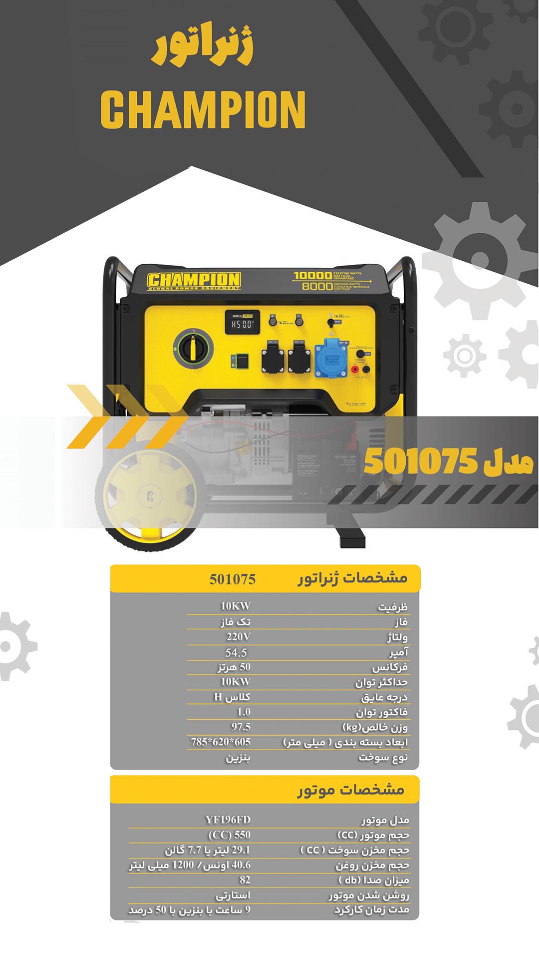موتور برق چمپیون بنزینی 10 کیلووات تک فاز CHA4