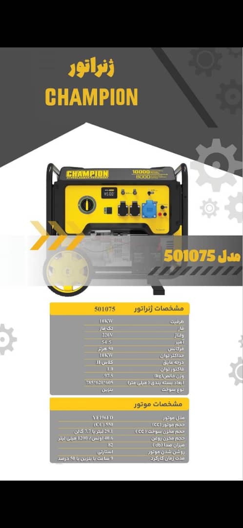 چمپیون یکی از برندهای معتبر آمریکایی در زمینه تولید ژنراتورهای قابل حمل و موتور برق است. محصولات این برند به دلیل کیفیت ساخت بالا، دوام زیاد، صدای کم و مصرف سوخت بهینه، در بازار جهانی و ایران محبوبیت زیادی دارند.